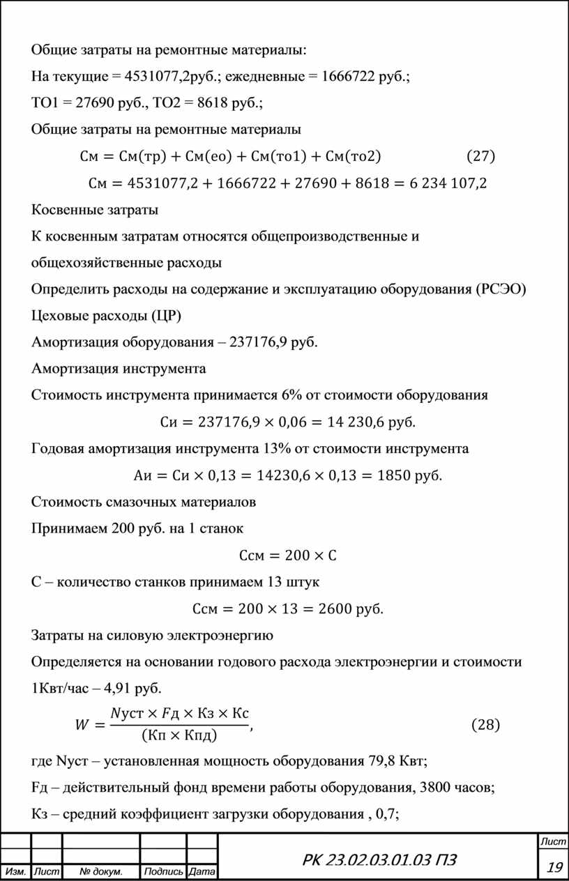 2.3.2 Определение затрат на запасные части и ремонтные материалы……..17