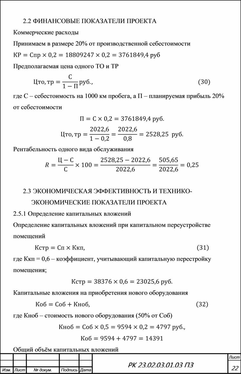 2.5.3 Определение срока окупаемости капитальных вложений…………...…23