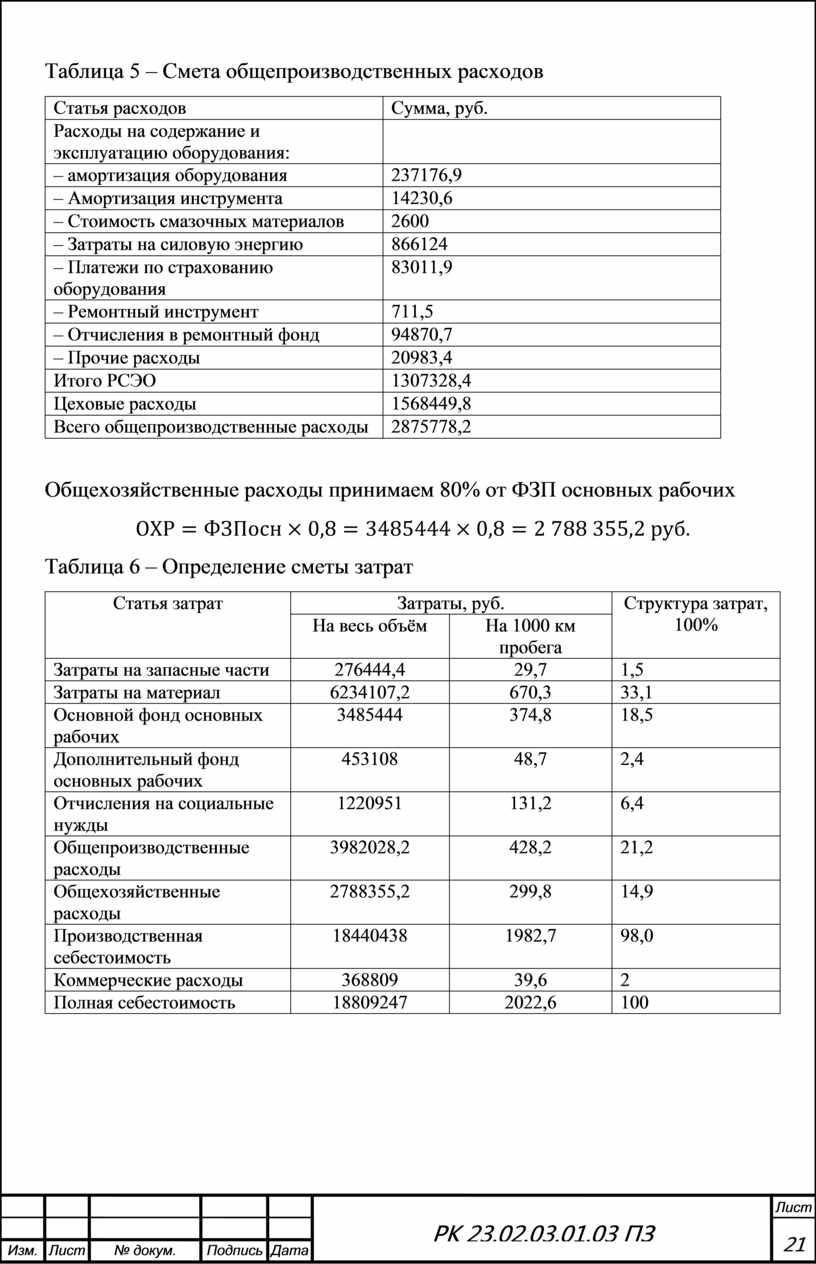 2.3 ОПРЕДЕЛЕНИЕ СЕБЕСТОИМОСТИ РАБОТ