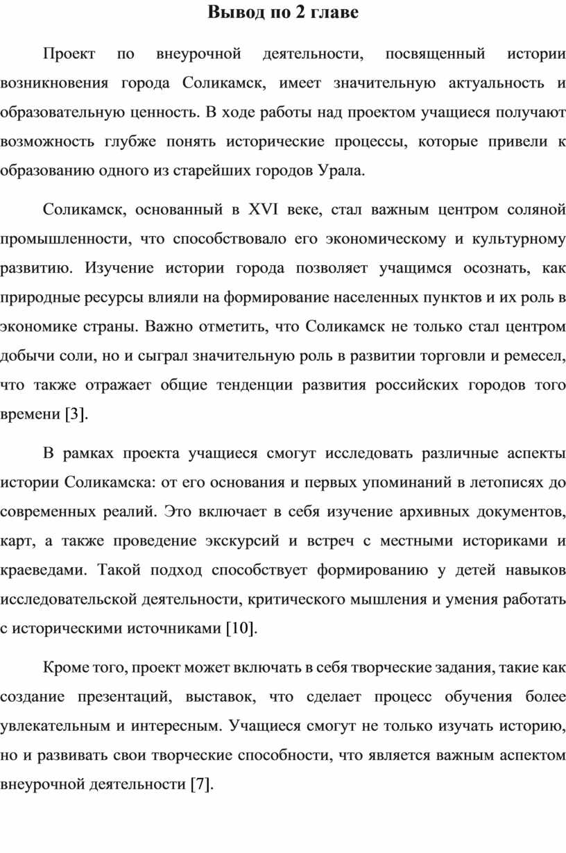 Глава 2 «Разработка проекта по внеурочной деятельности по теме «Как появился город Соликамск»