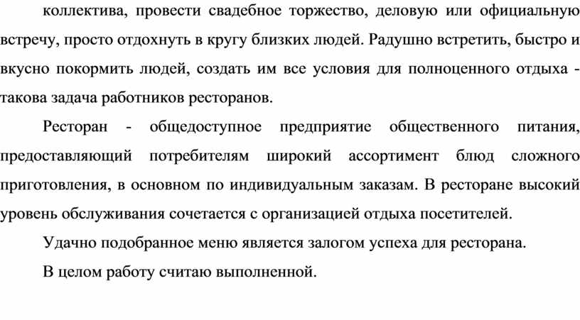 Вывод: Подойдя к организации своего ресторанного бизнеса грамотно и профессионально, можно добиться высоких результатов и стать успешным ресторатором.