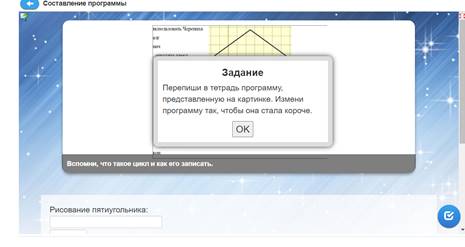 Ученики устанавливают соответствие между программой и рисунком, который получается при выполнении этой программы. Можно выполнить Это задание на компьютере по ссылке https://learningapps.org/display?v=pbn7outej25 |