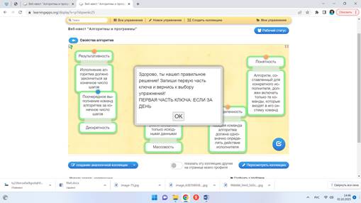 обеспечение условий, способствующих развитию алгоритмического мышления как необходимого условия профессиональной деятельности в современном информационном обществе, предполагающего способность обучающегося разбивать сложные задачи на более простые подзадачи, сравнивать новые задачи с задачами, решенными ранее, определять шаги для достижения результата и так далее;