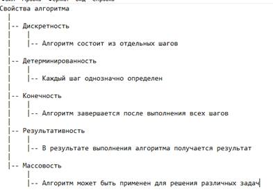 - анализировать предлагаемые последовательности команд на предмет наличия у них таких свойств алгоритма, как дискретность, детерминированность, понятность, результативность, массовость;