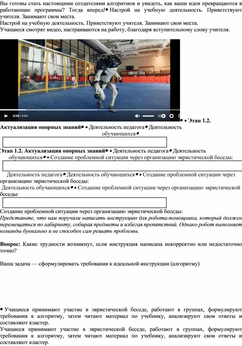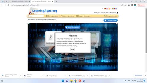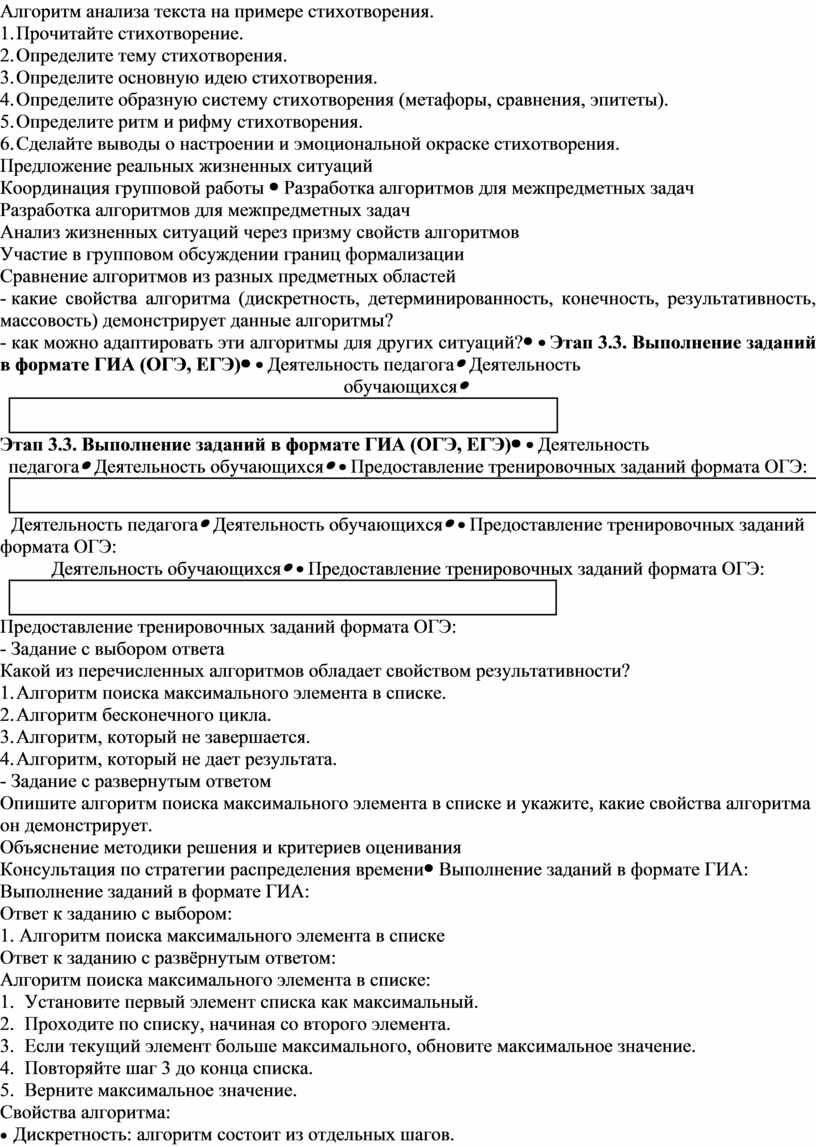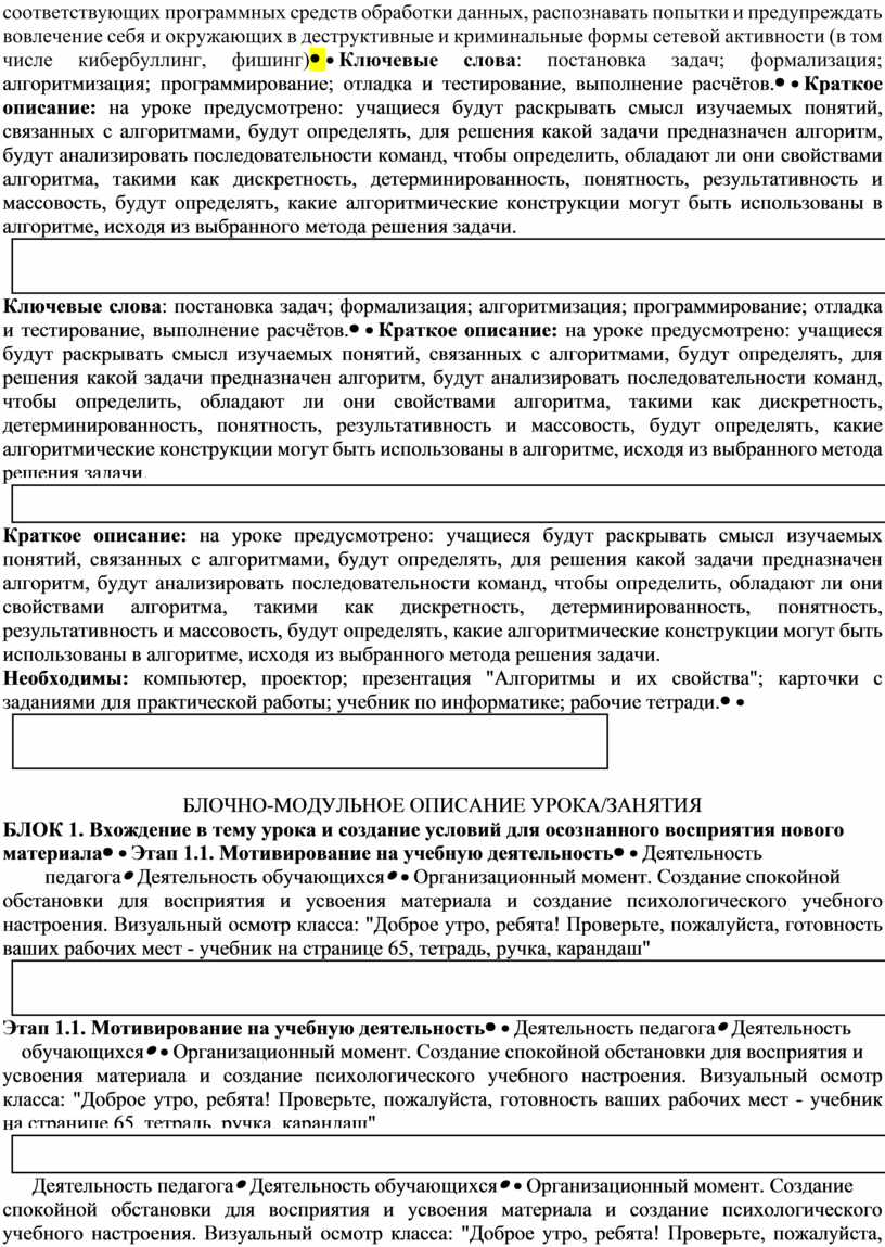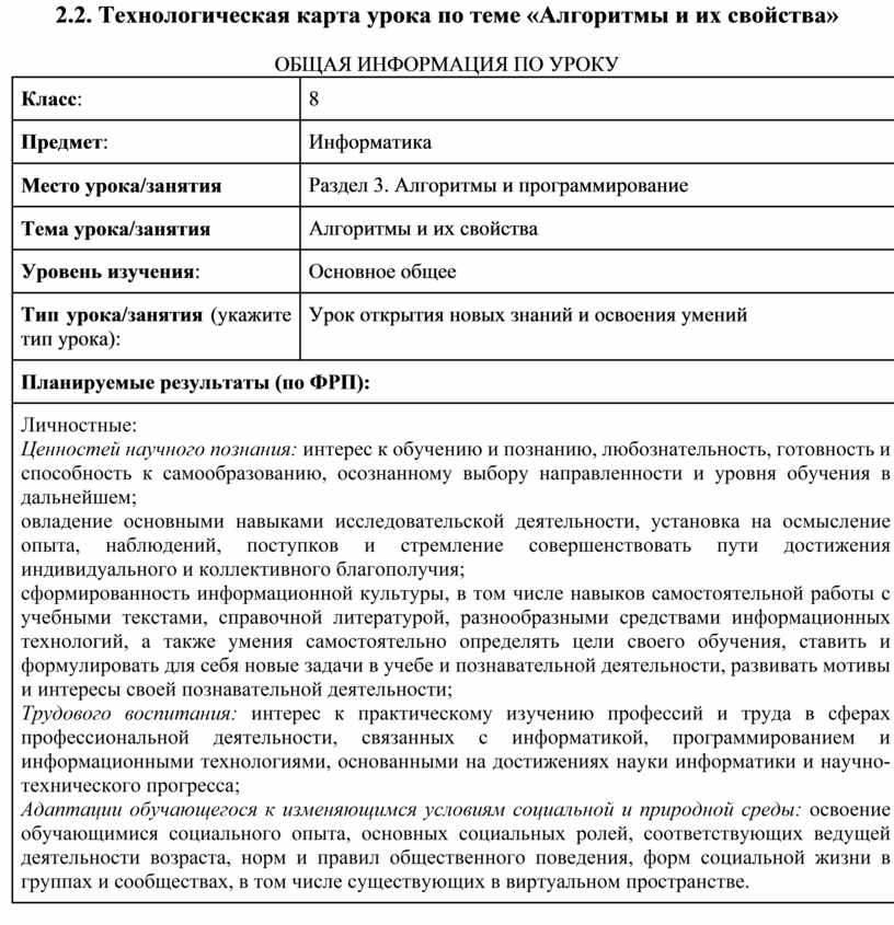 2.2. Технологическая карта урока по теме «Алгоритмы и их свойства»