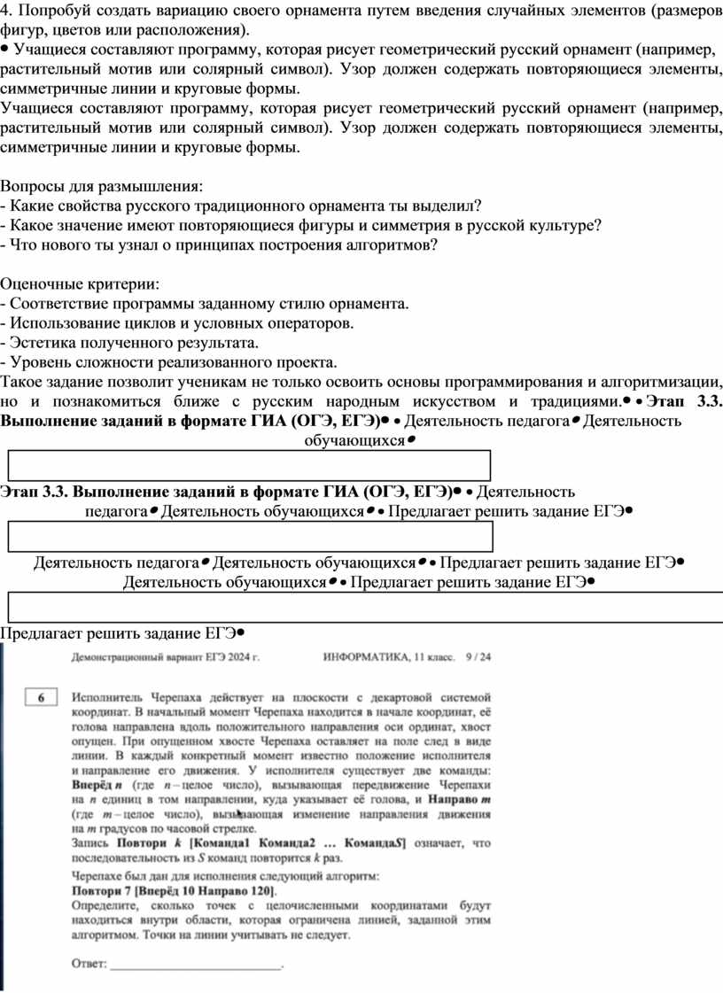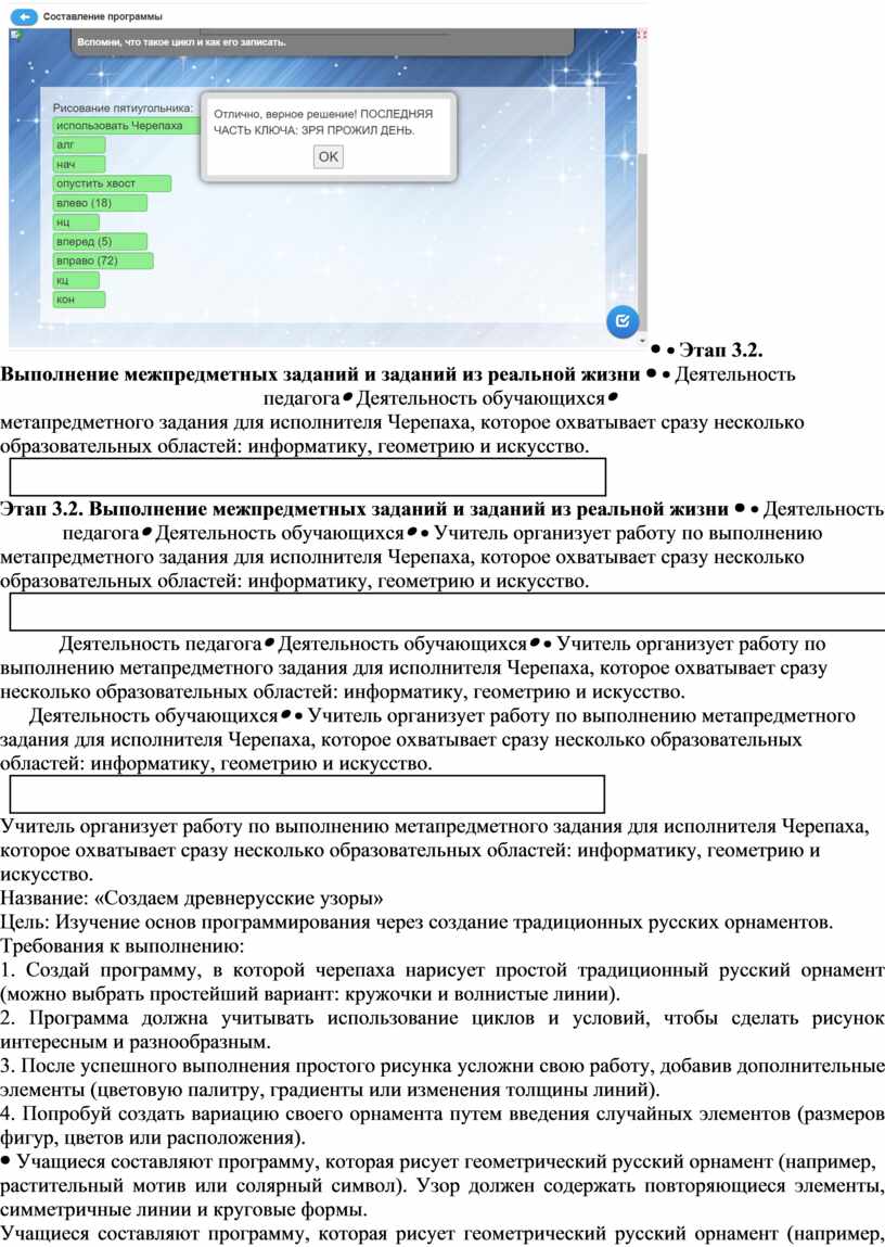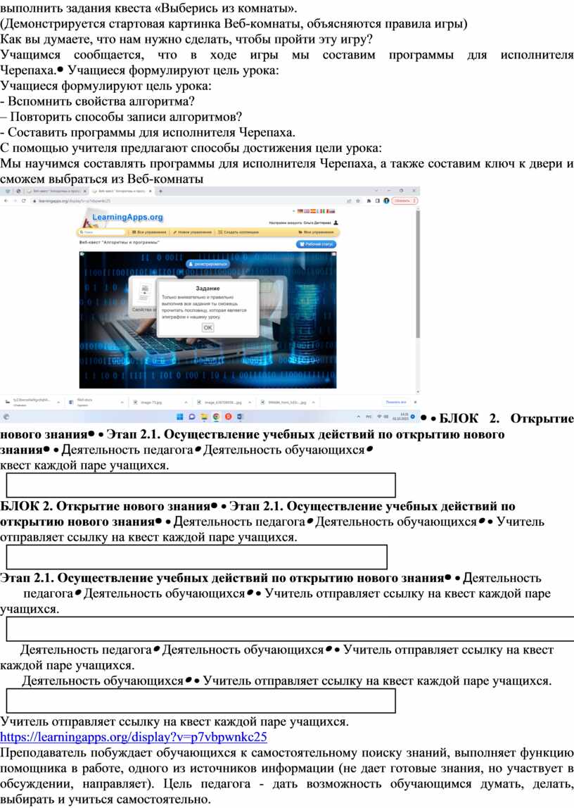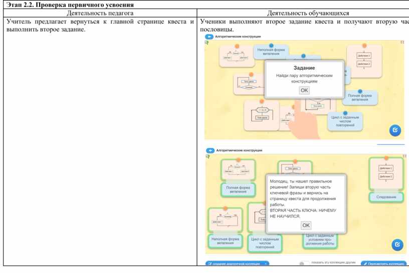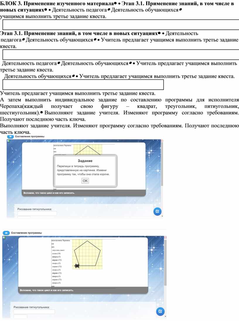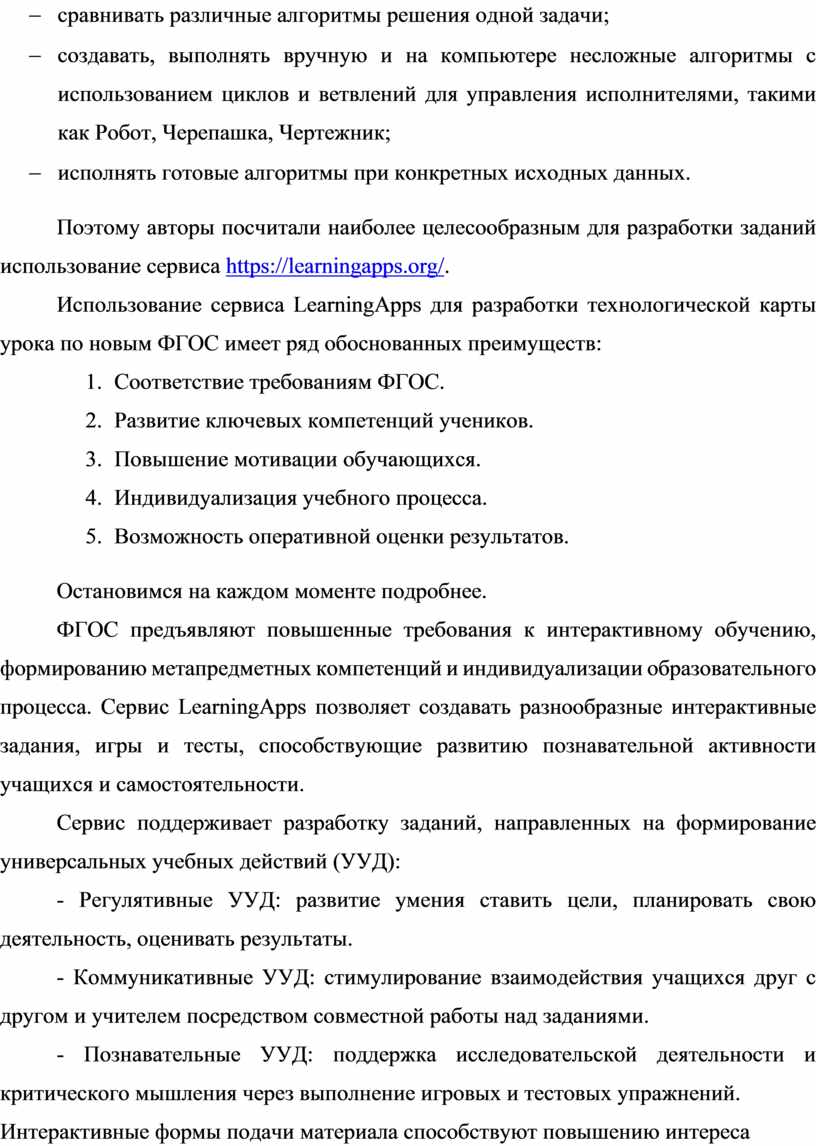 2.1. Технологическая карта урока по теме «Свойства алгоритма. Способы записи алгоритма. ПР №1. Создание и выполнение на компьютере несложных алгоритмов с использованием циклов и ветвлений для управления исполнителем Черепашка»
