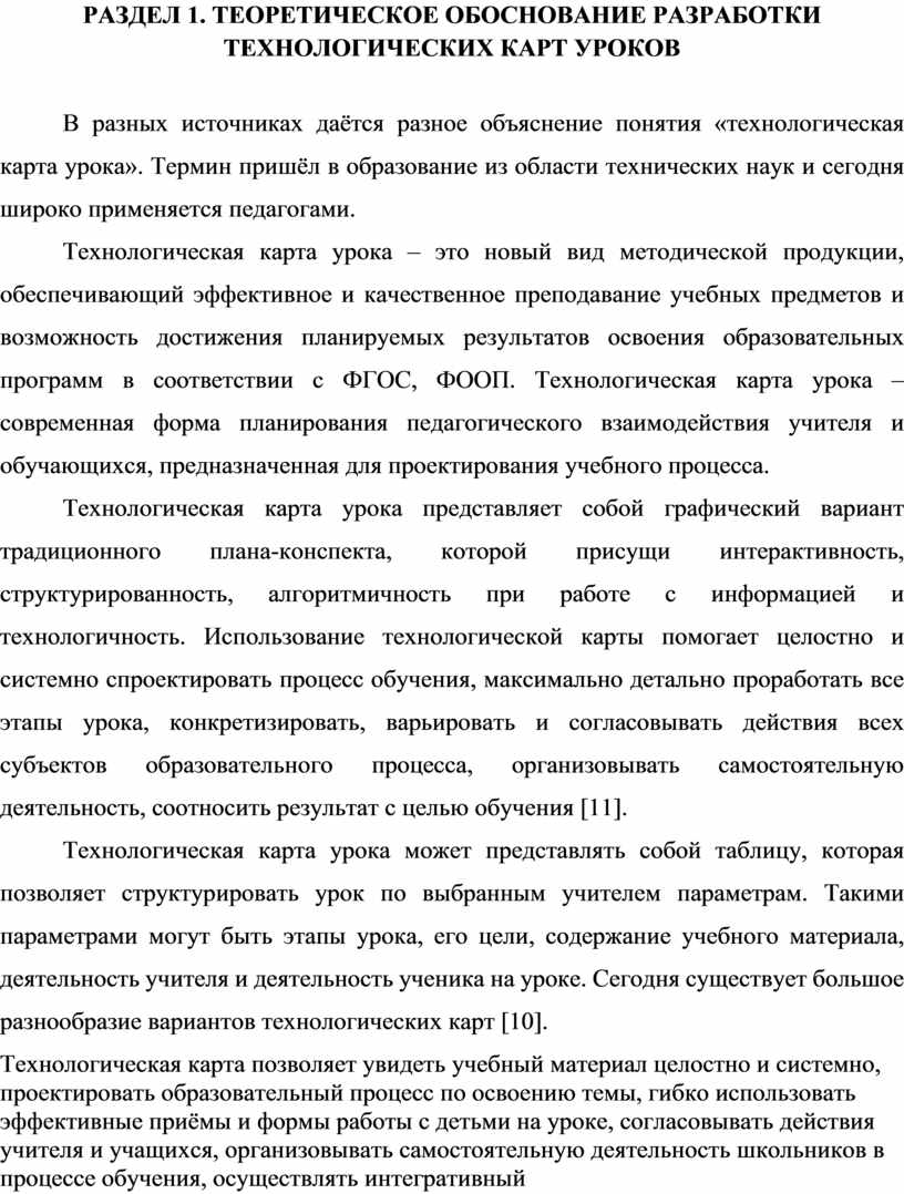 РАЗДЕЛ 1. ТЕОРЕТИЧЕСКОЕ ОБОСНОВАНИЕ РАЗРАБОТКИ ТЕХНОЛОГИЧЕСКИХ КАРТ УРОКОВ