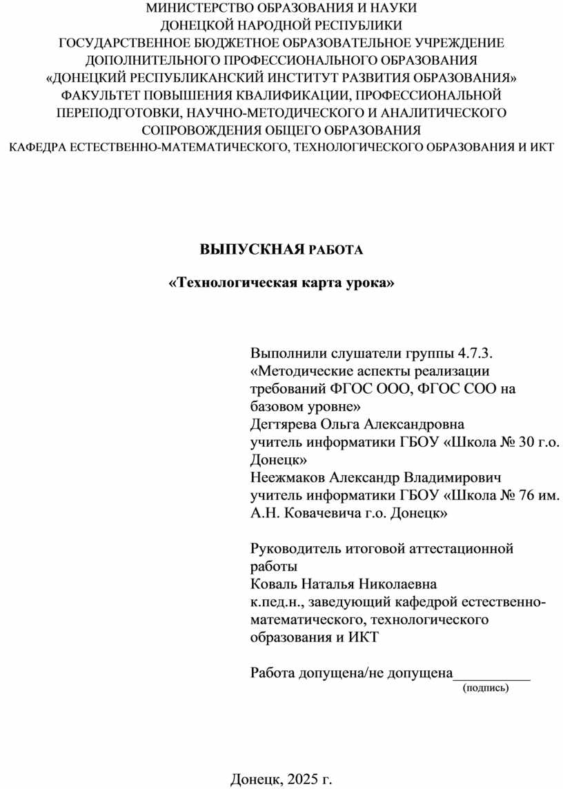 учитель информатики ГБОУ «Школа № 76 им. А.Н. Ковачевича г.о. Донецк»