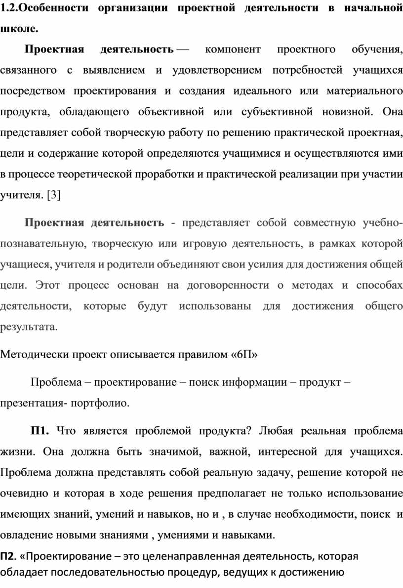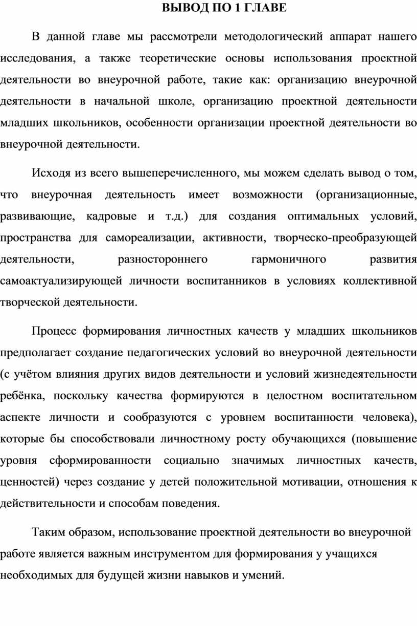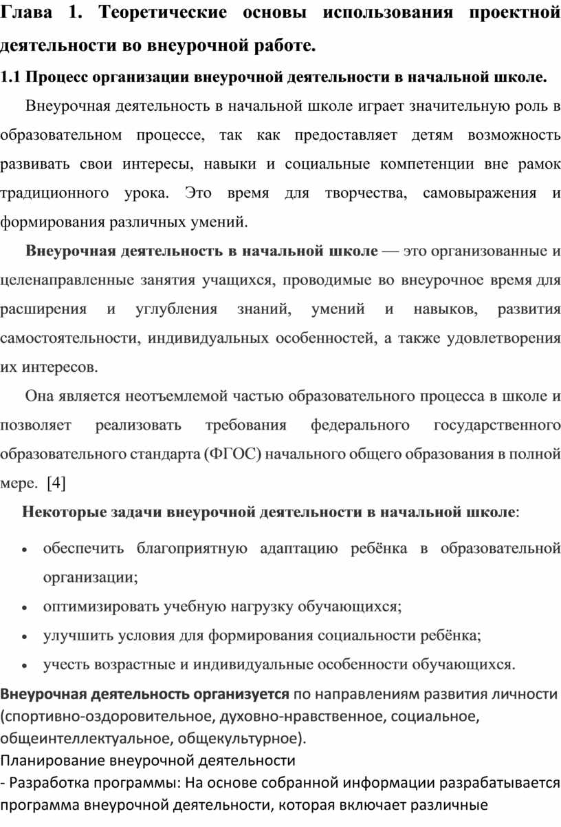 ГЛАВА 1. Теоретические основы использования проектной деятельности во внеурочной работе