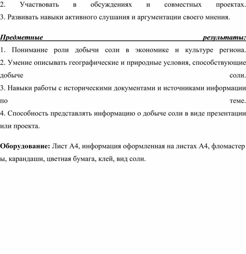·Познавательные УУД: 1. Изучать исторические факты о добыче соли в