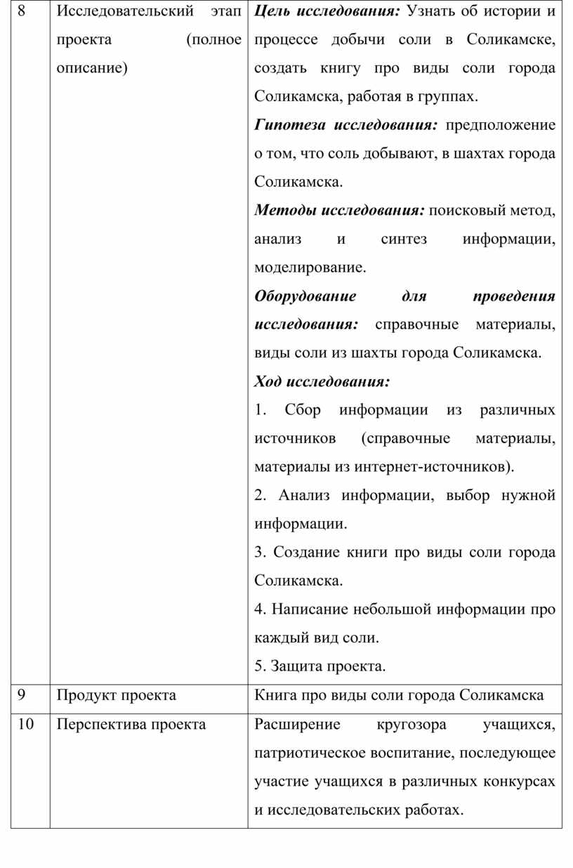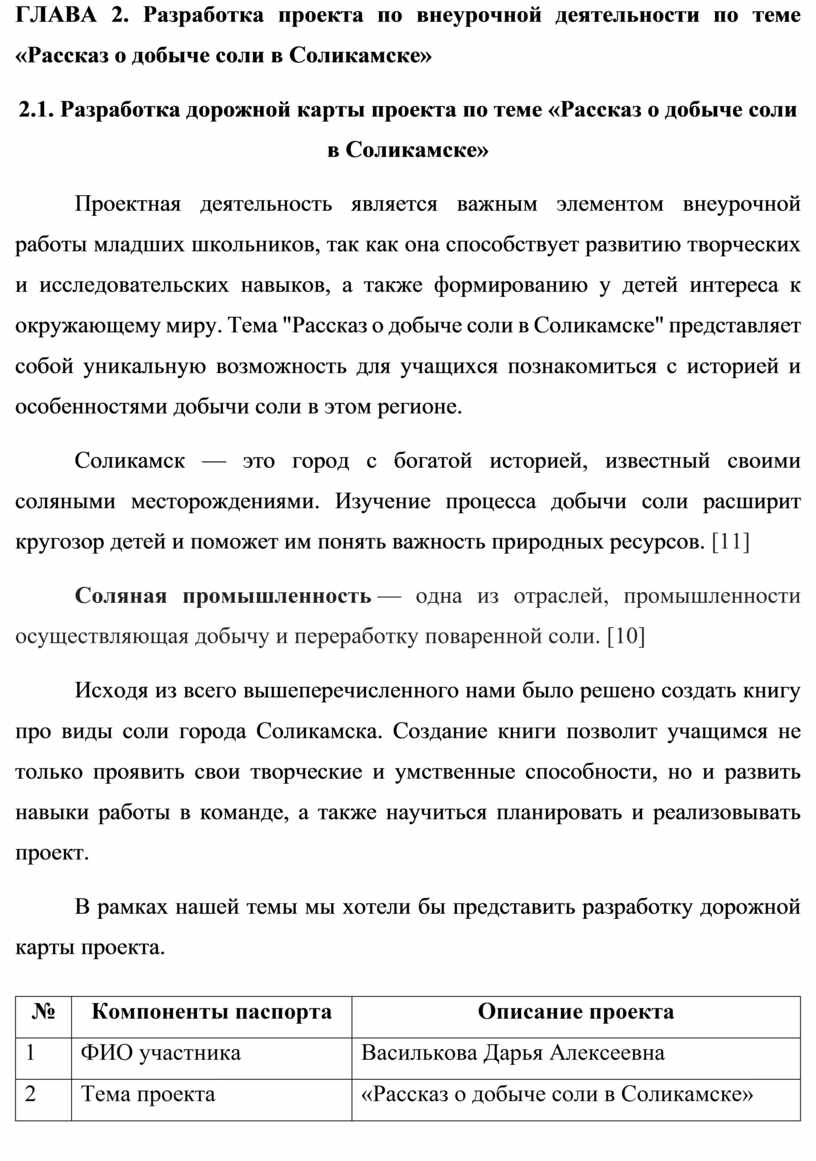 ГЛАВА 2 Разработка проекта по внеурочной деятельности по теме «Рассказ о добыче соли в Соликамске»