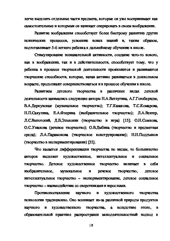 творческой составляющей личности ребенка дошкольного возраста в разных