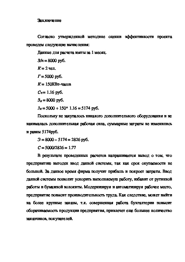 предприятию выгоден ввод данной системы, так как срок окупаемости не