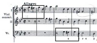 Струнная группа grosso играет здесь непостоянно, выполняет поддерживающую роль аккомпанемента, частично дублируя партии I и II скрипок.