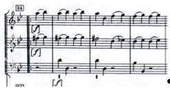 Первыми в обеих группах вступают басы и орган, потом - альты и I скрипки, затем II скрипки. Мотив проходит во всех голосах. Также здесь есть символ «креста», символизирующие страдания Иисуса Христа.
