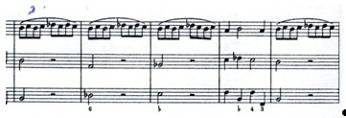 Adagio – В конце раздела (последние 4 такта) тоже присутствует имитация, в это время - проходящая септима в басу после моторности шестнадцатых, мерный и спокойный шаг четвертей возвращает в исходное умиротворенное состояние.
