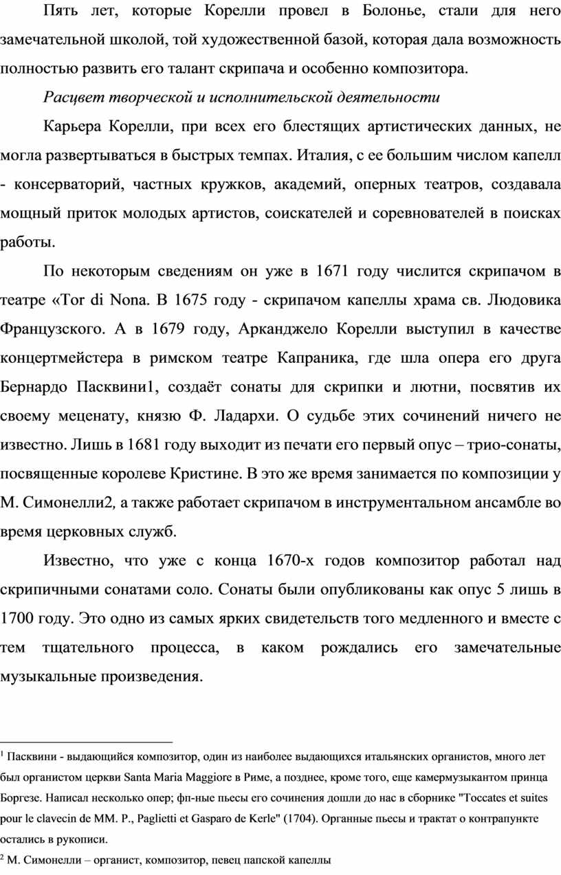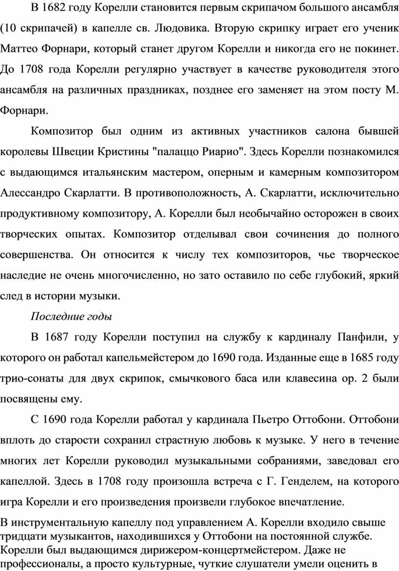 Пять лет, которые Корелли провел в Болонье, стали для него замечательной школой, той художественной базой, которая дала возможность полностью развить его талант скрипача и особенно композитора.