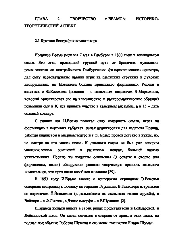 ГЛАВА 2. ТВОРЧЕСТВО И. БРАМСА: ИСТОРИКОТЕОРЕТИЧЕСКИЙ