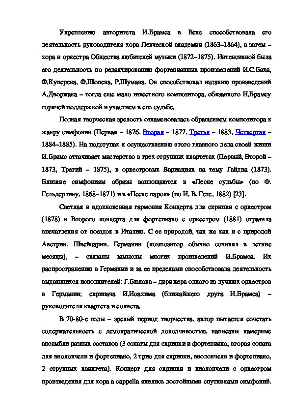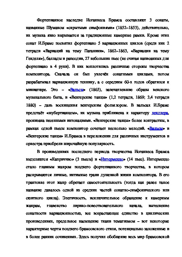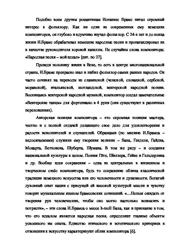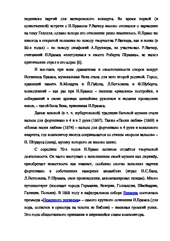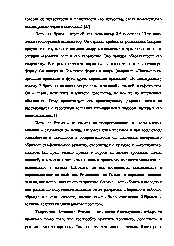 И.Брамса и его роли в развитии мировой музыкальной культуры.
