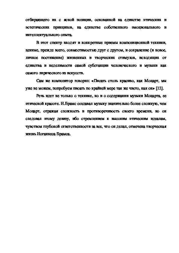 этической красоте. И.Брамс создавал музыку значительно более сложную, чем