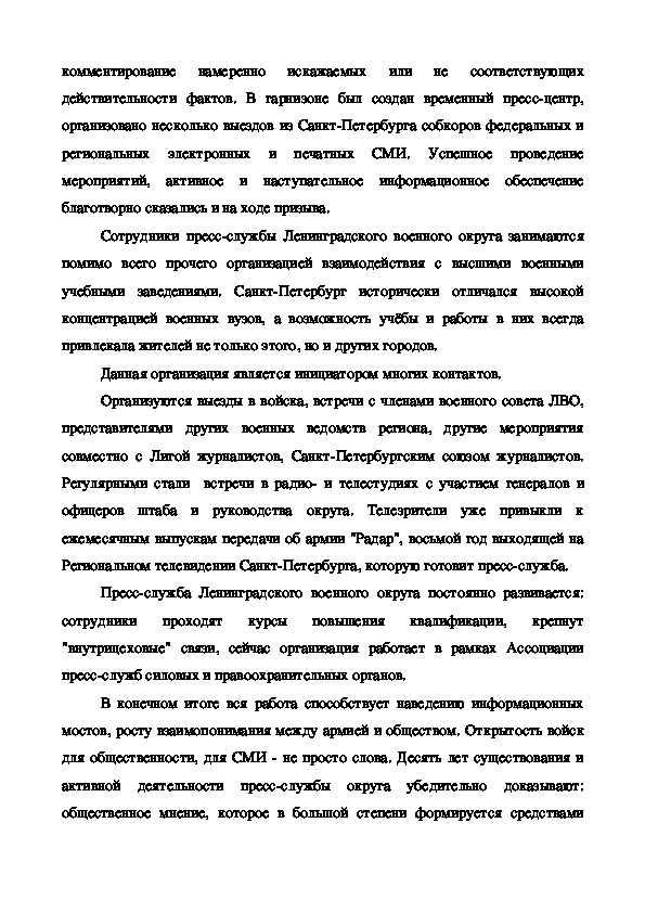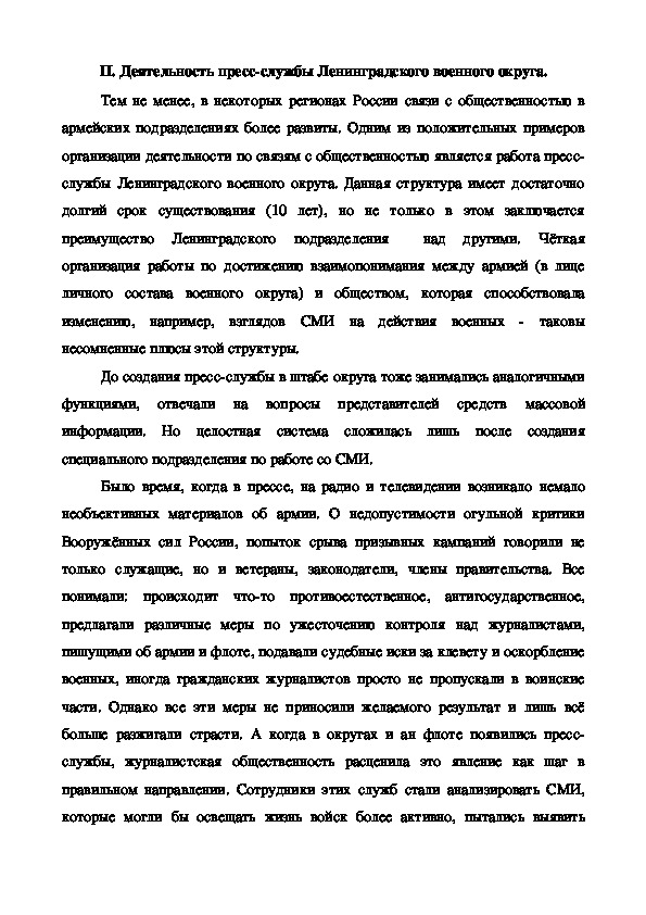 II.ДЕЯТЕЛЬНОСТЬ ПРЕСССЛУЖБЫ ЛЕНИНГРАДСКОГО