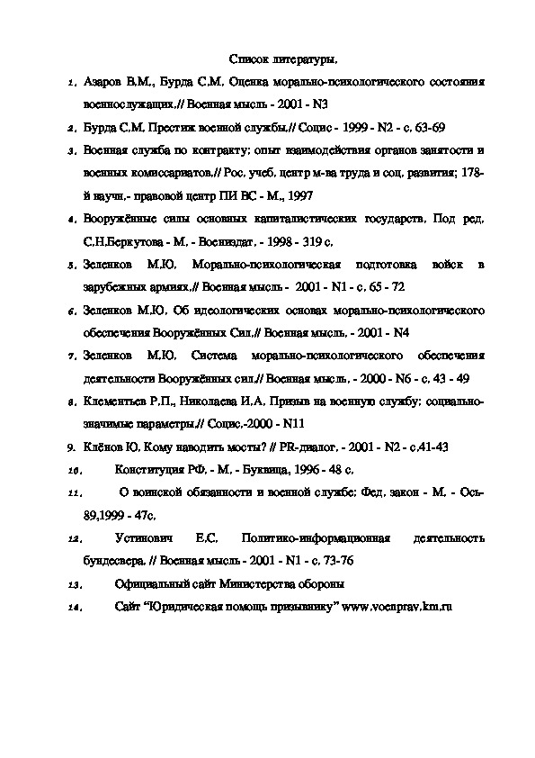 2. Бурда С.М. Престиж военной службы.// Социс 1999 N2 с. 6369