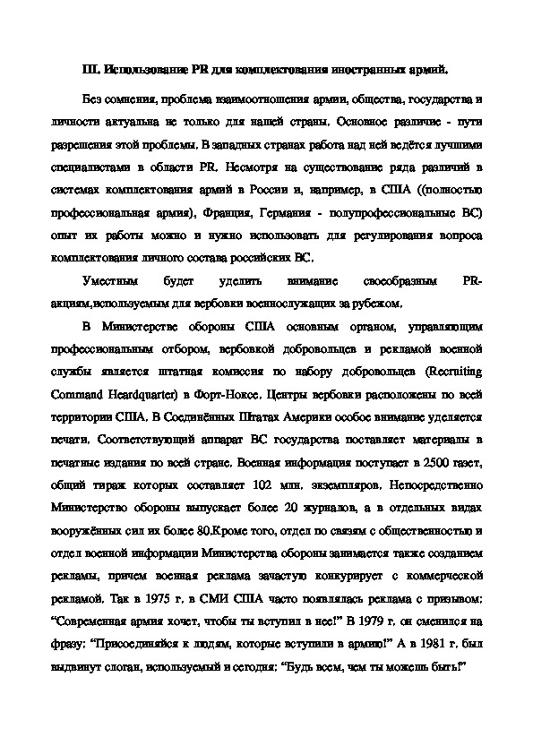 IIL. ИСПОЛЬЗОВАНИЕ PR ДЛЯ КОМПЛЕКТОВАНИЯ