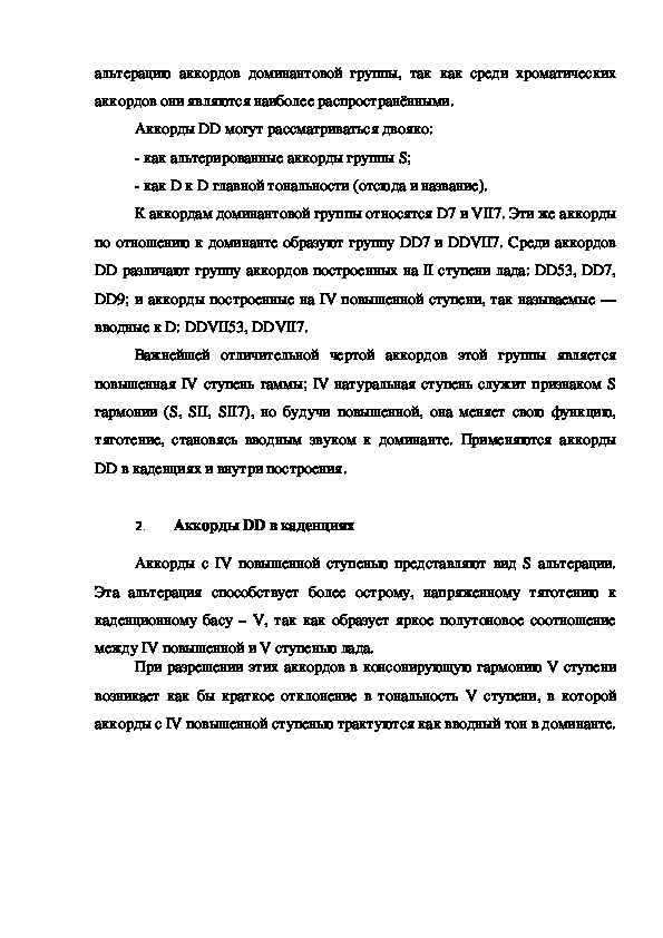 по теме: Аккорды двойной доминанты1. Особенности трактовки DD, её признаки