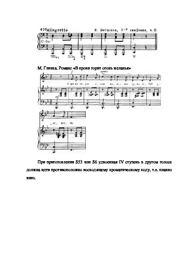 Таким образом, каденционными являются: DD65, DD43, DDVII7, DDVII65.М. Глинка. Романс «В крови горит огонь желанья»