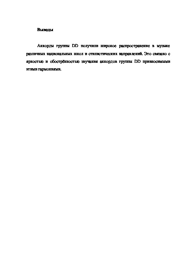 альтерированной DD в D с секстой. ( реже альтерированную D)Выводы