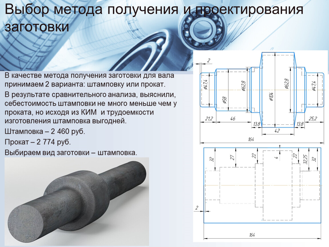 В качестве метода получения заготовки для вала принимаем 2 варианта: штамповку или прокат.
