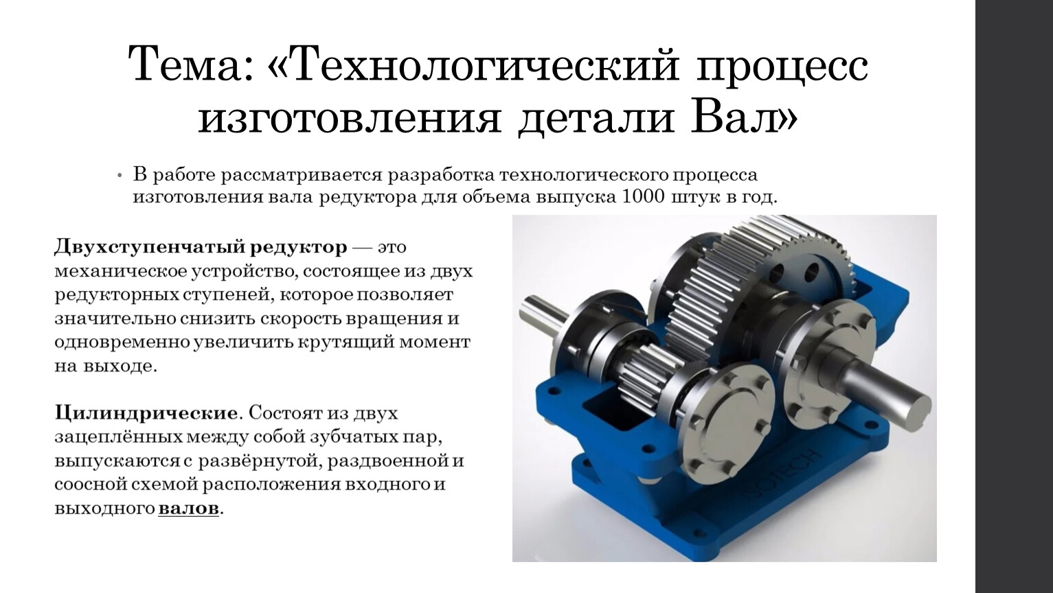 В работе рассматривается разработка технологического процесса изготовления вала редуктора для объема выпуска 1000 штук в год.