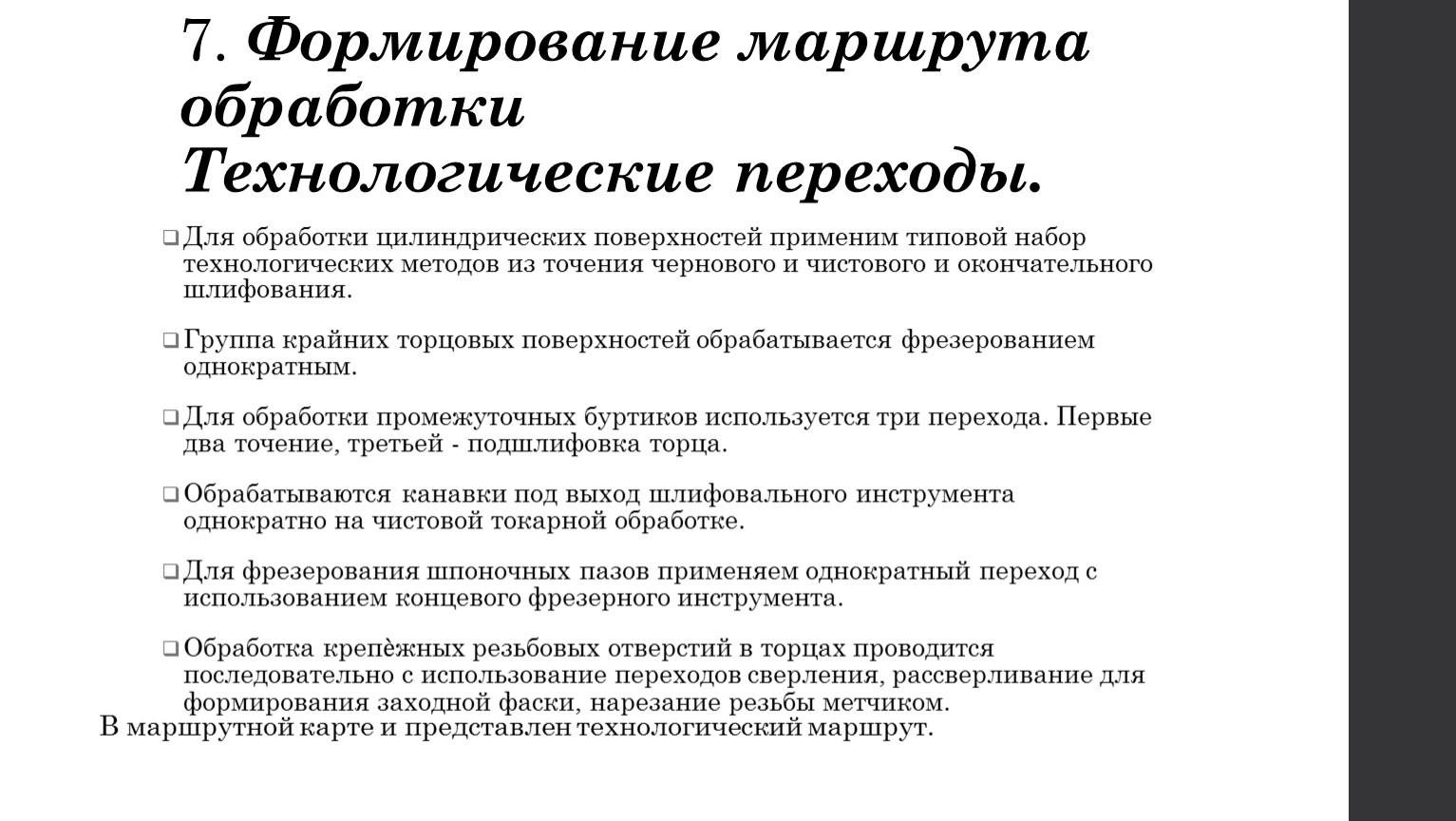 С учетом исходной заготовки выбраны методы обработки, которые сконцентрированы на различных технологических операциях, выполняемых на автоматизированных и универсальных обрабатывающих станках.