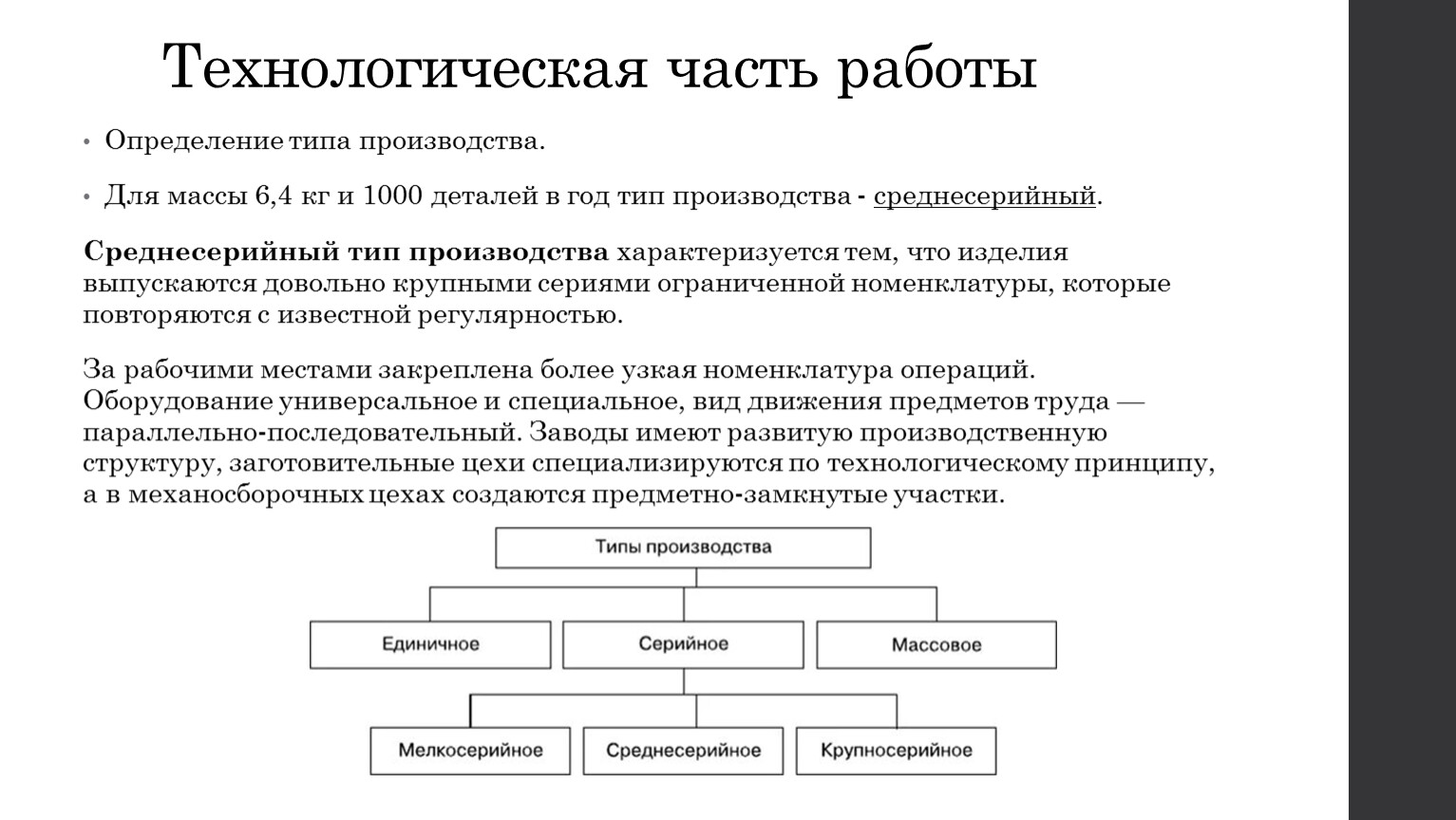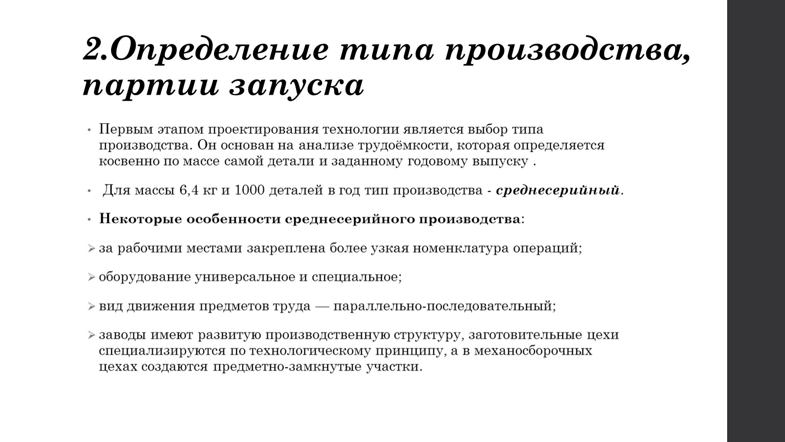 Для массы 6,4 кг и 1000 деталей в год тип производства - среднесерийный.