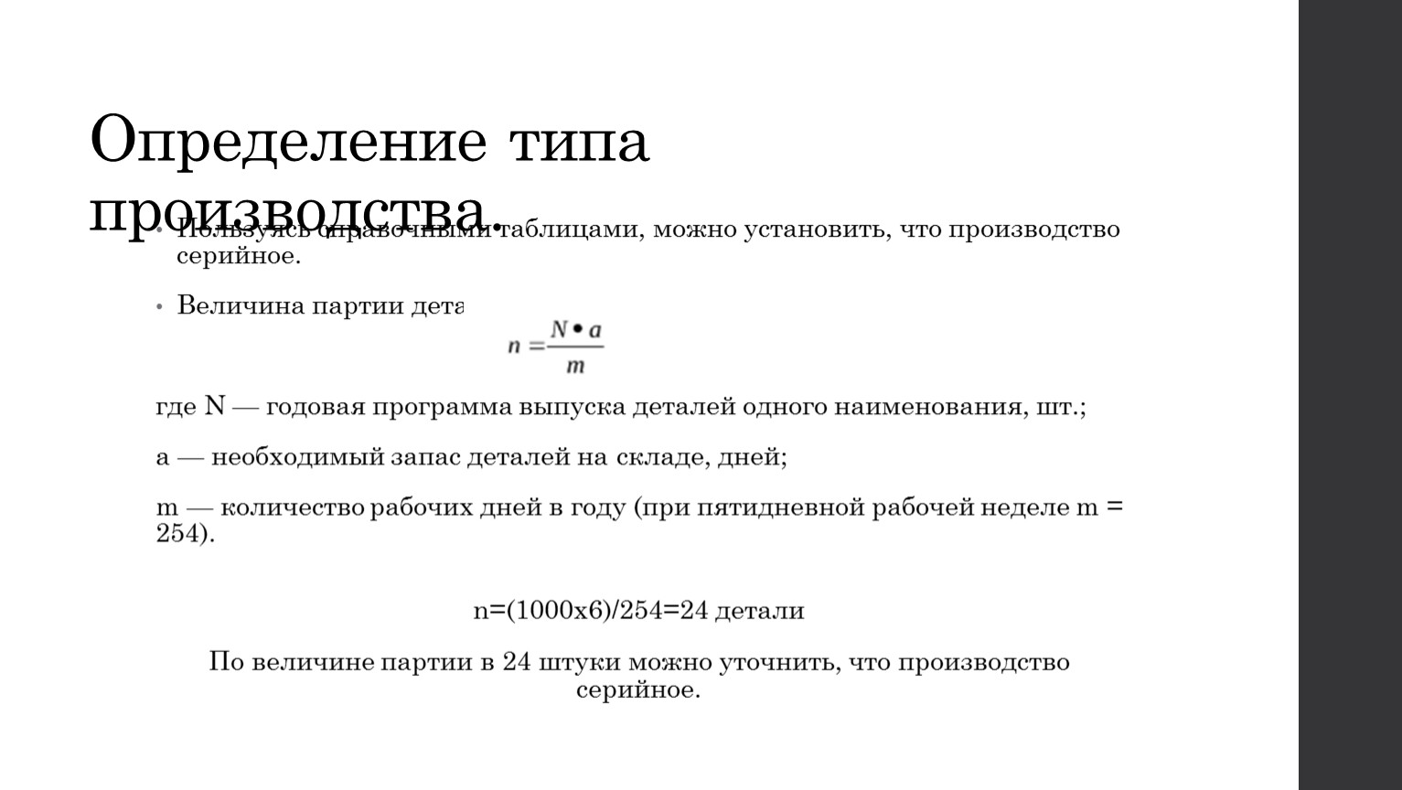 Пользуясь справочными таблицами, можно установить, что производство серийное.