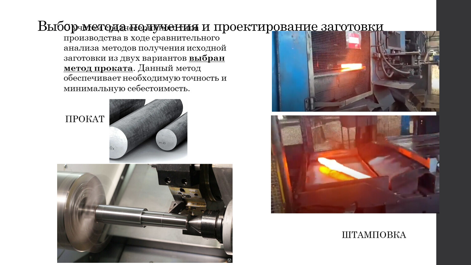 С учѐтом среднесерийного типа производства в ходе сравнительного анализа методов получения исходной заготовки из двух вариантов выбран метод проката. Данный метод обеспечивает необходимую точность и минимальную себестоимость.