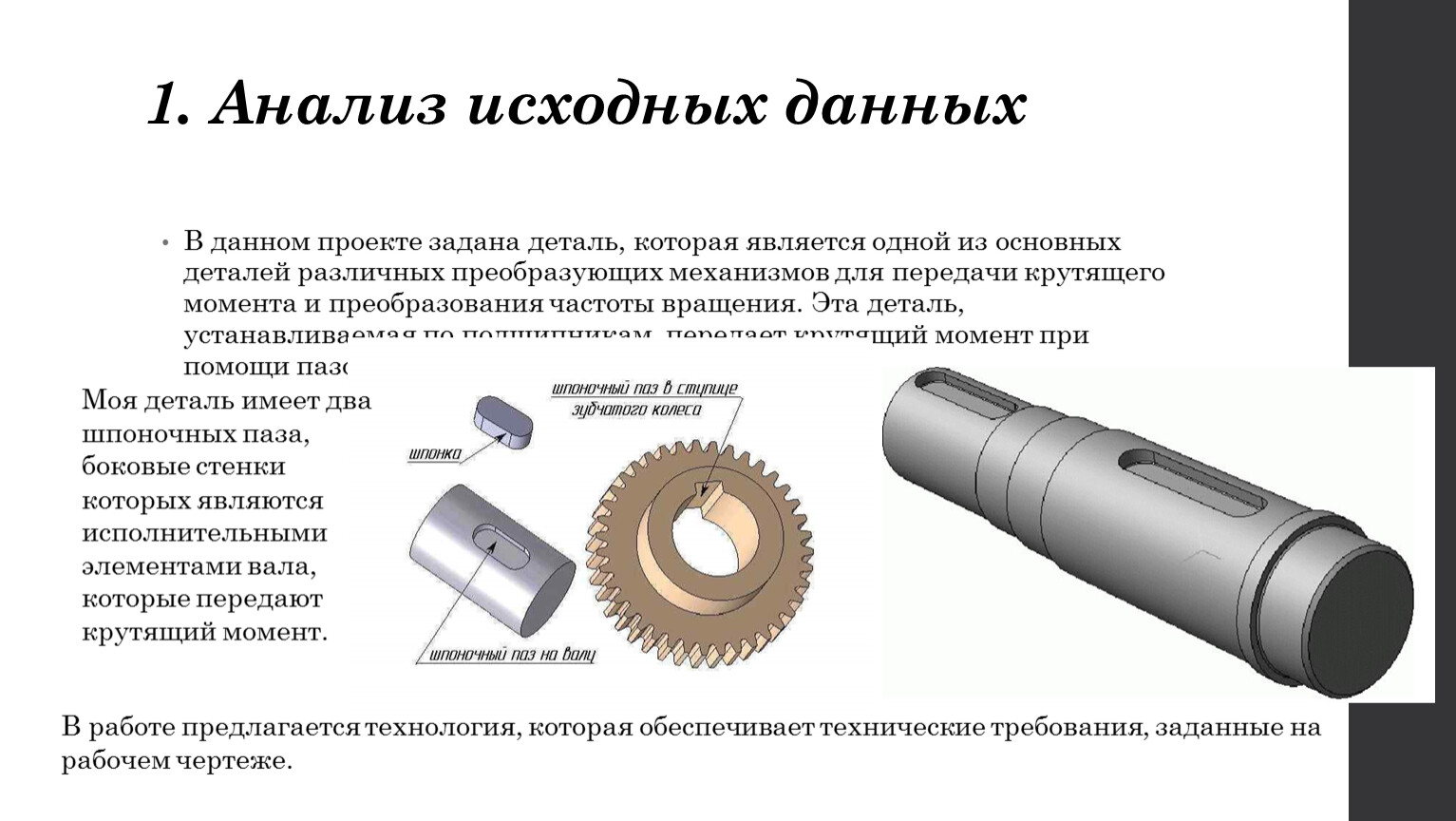 В данном проекте задана деталь, которая является одной из основных деталей различных преобразующих механизмов для передачи крутящего момента и преобразования частоты вращения. Эта деталь, устанавливаемая по подшипникам, передает крутящий момент при помощи пазов.