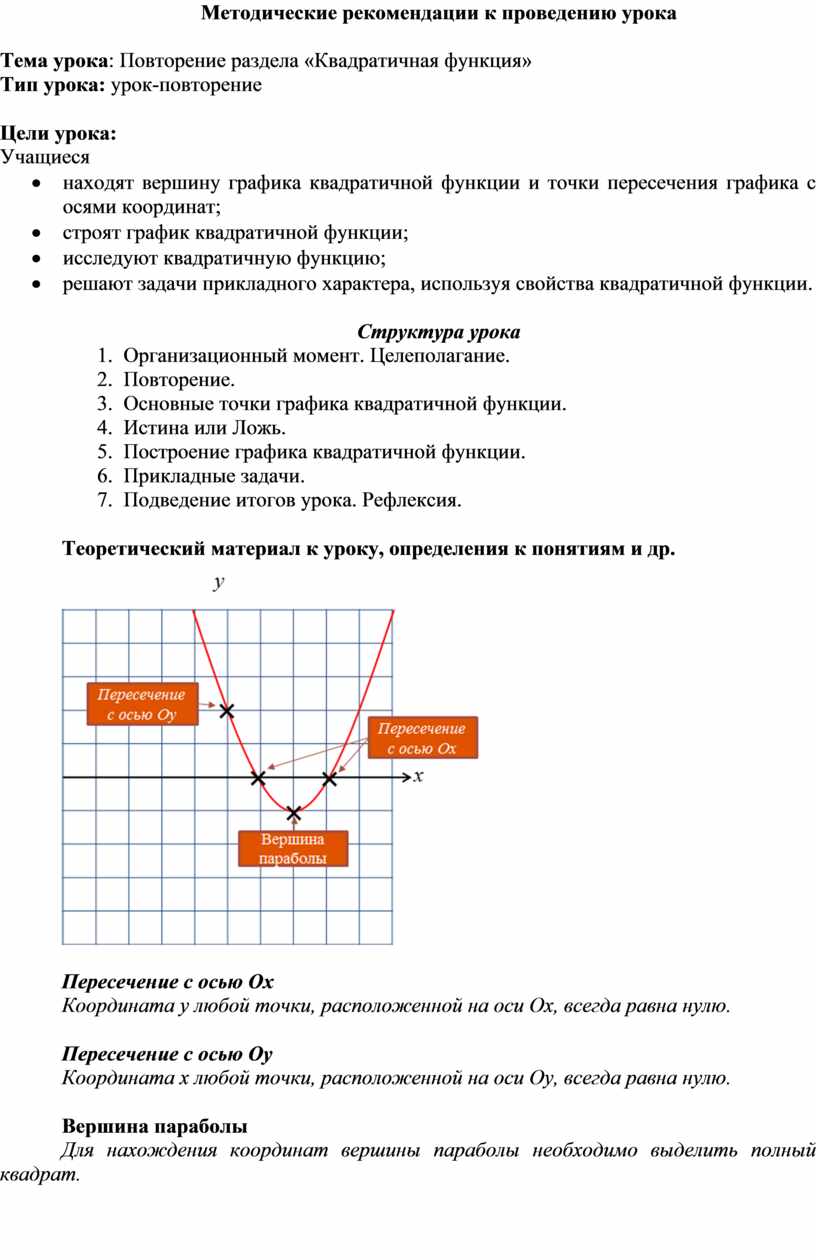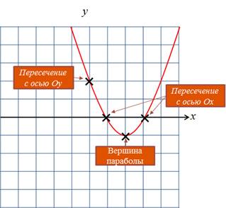 · находят вершину графика квадратичной функции и точки пересечения графика с осями координат;