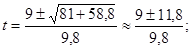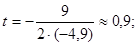 Условию задачи удовлетворяет только одно из найденных значений t. Таким образом, мяч упадет на землю через 2 с.