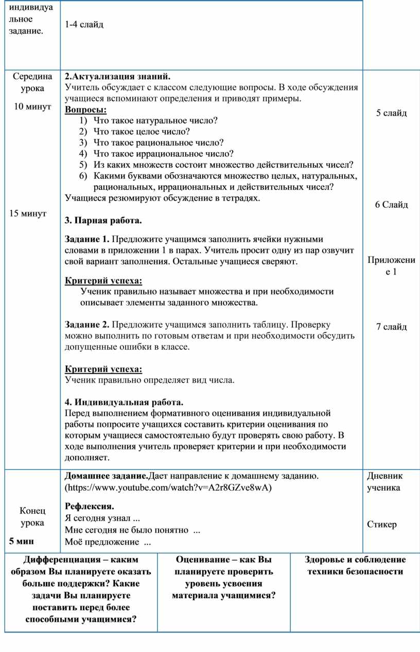 Домашнее задание.Дает направление к домашнему заданию. (https://www.youtube.com/watch?v=A2r8GZve8wA) Рефлексия. Я сегодня узнал ... Мне сегодня не было понятно ... Моё предложение ... |