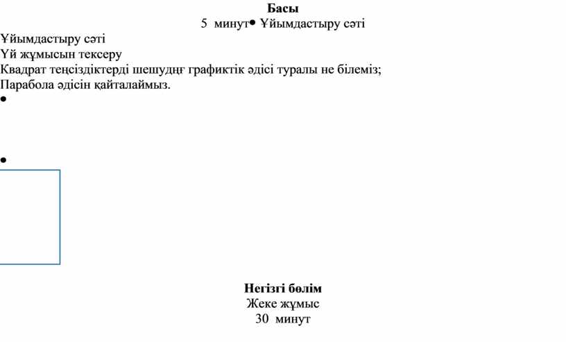 Негізгі бөлім Жеке жұмыс 30 минут