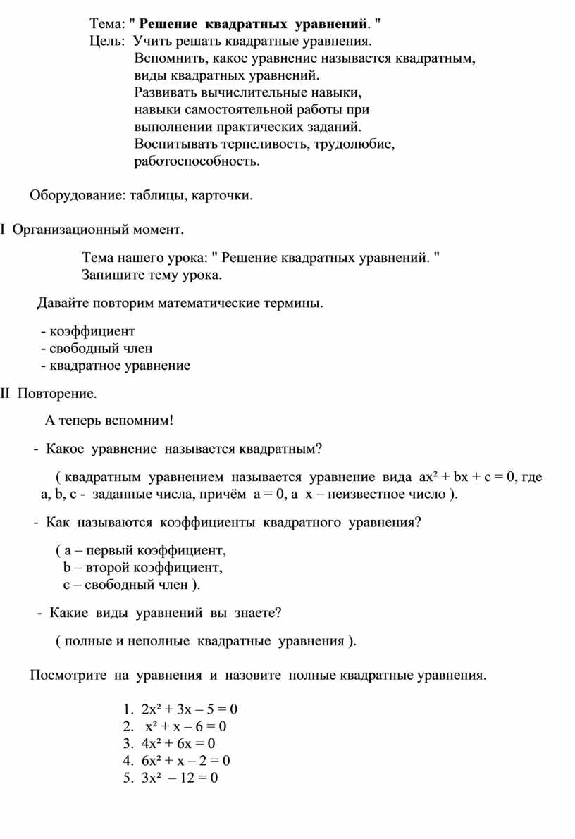 ( квадратным уравнением называется уравнение вида ax² + bx + c = 0, где