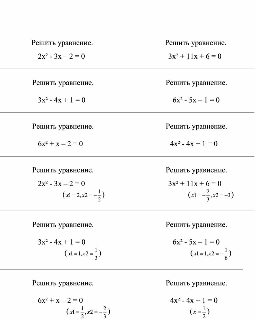 6x² + x – 2 = 0 4x² - 4x + 1 = 0