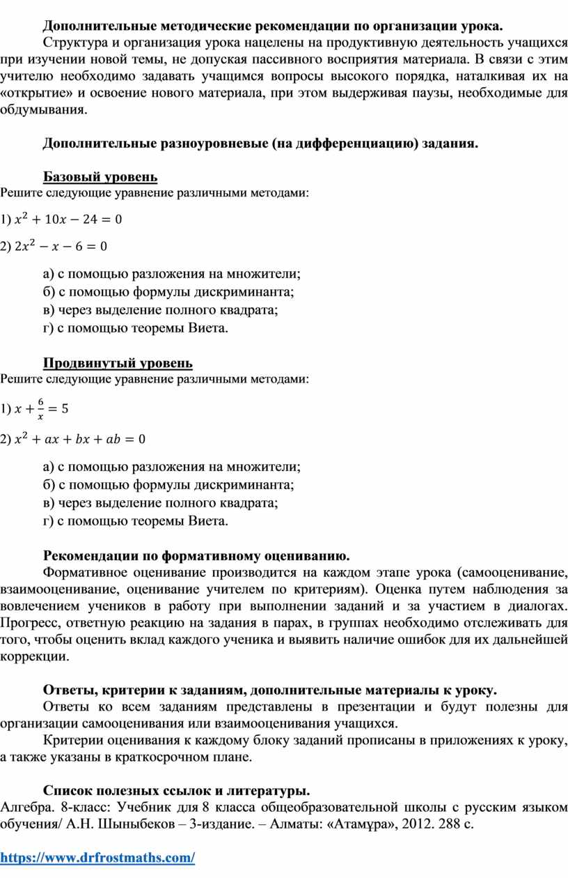Алгебра. 8-класс: Учебник для 8 класса общеобразовательной школы с русским языком обучения/ А.Н. Шыныбеков – 3-издание. – Алматы: «Атамұра», 2012. 288 с.