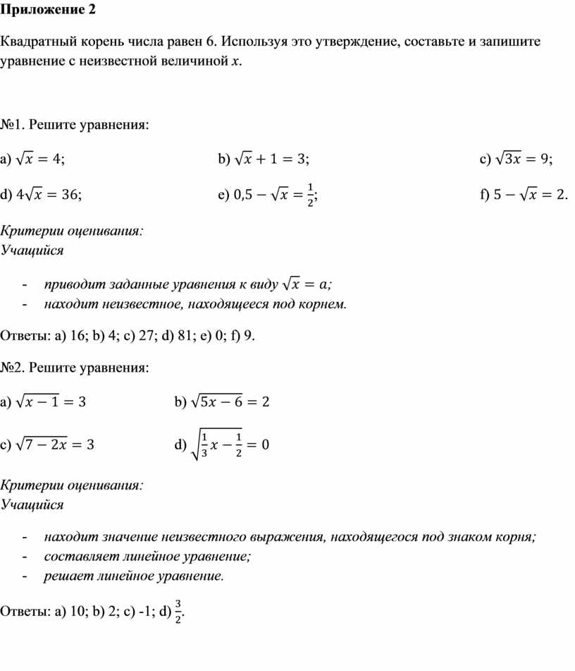 Квадратный корень числа равен 6. Используя это утверждение, составьте и запишите уравнение с неизвестной величиной х.