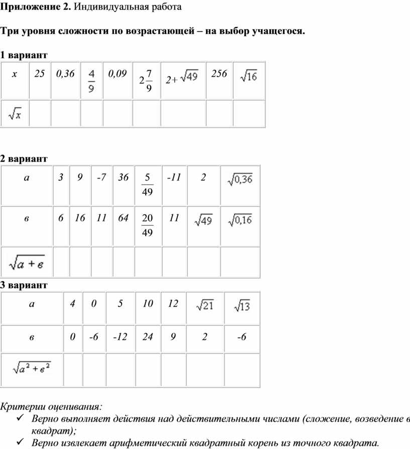 ü Верно выполняет действия над действительными числами (сложение, возведение в квадрат);
