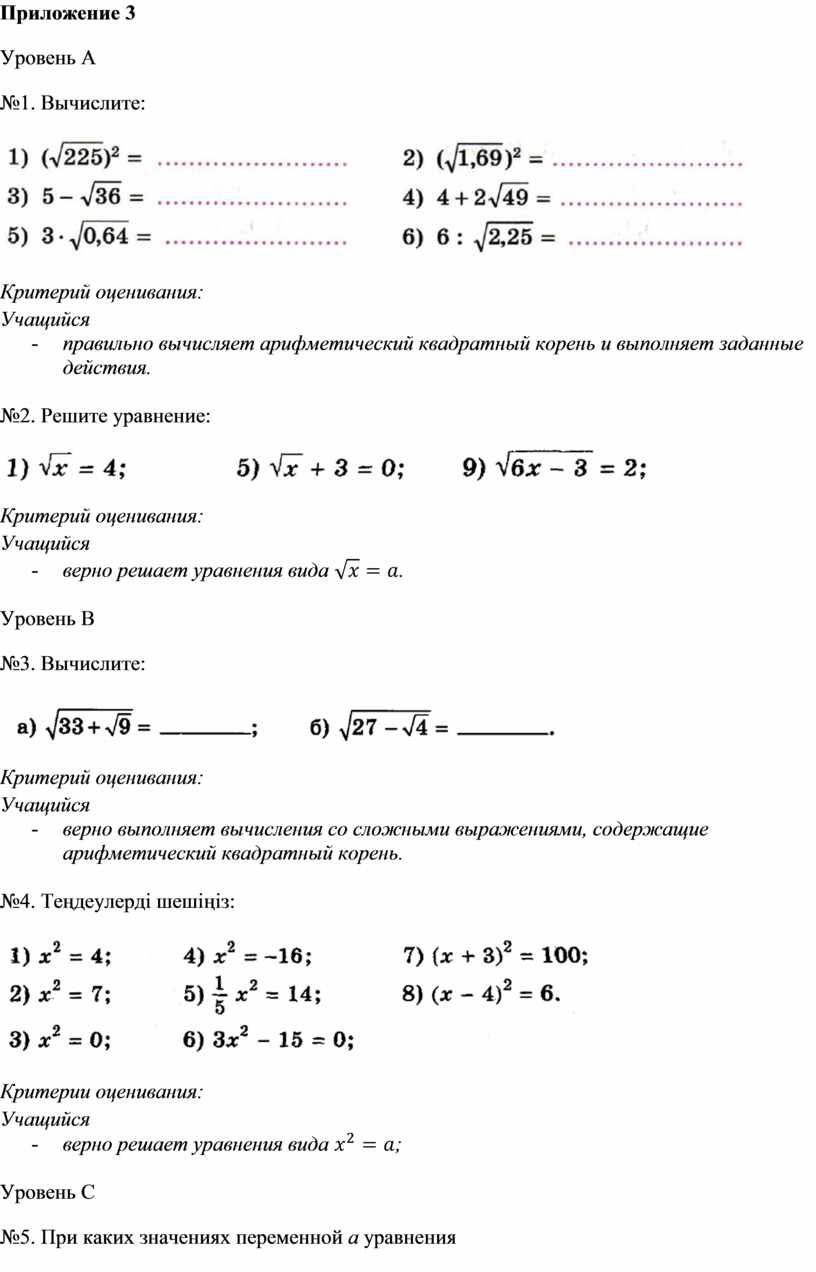 - правильно вычисляет арифметический квадратный корень и выполняет заданные действия.