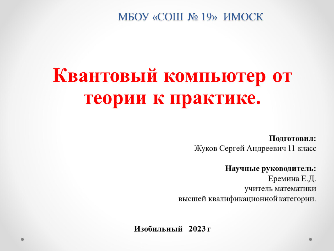 Квантовый компьютер от теории к практике.