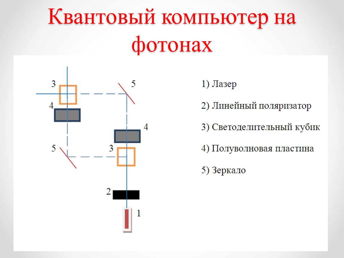 На данный момент я работаю над созданием макета квантового компьютера, который будет показывать основной принцип работы квантовых вычислений. Он будет работать на фотонах. Эта схема моего квантового компьютера на фотонах. На этом макете я планирую проверить работу алгоритма Дойча – Йожи.