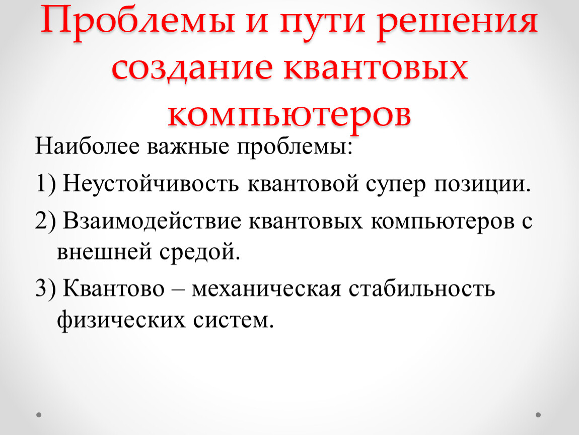Проблемы и пути решения создание квантовых компьютеров